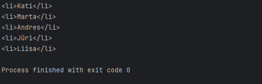 console.log(`<li>${nimi}</li>`);