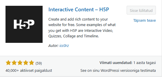 See plugin võimaldab luua interaktiivset sisu, nagu viktoriinid, testid, interaktiivsed videod, mänguelemendid ja palju muud.
